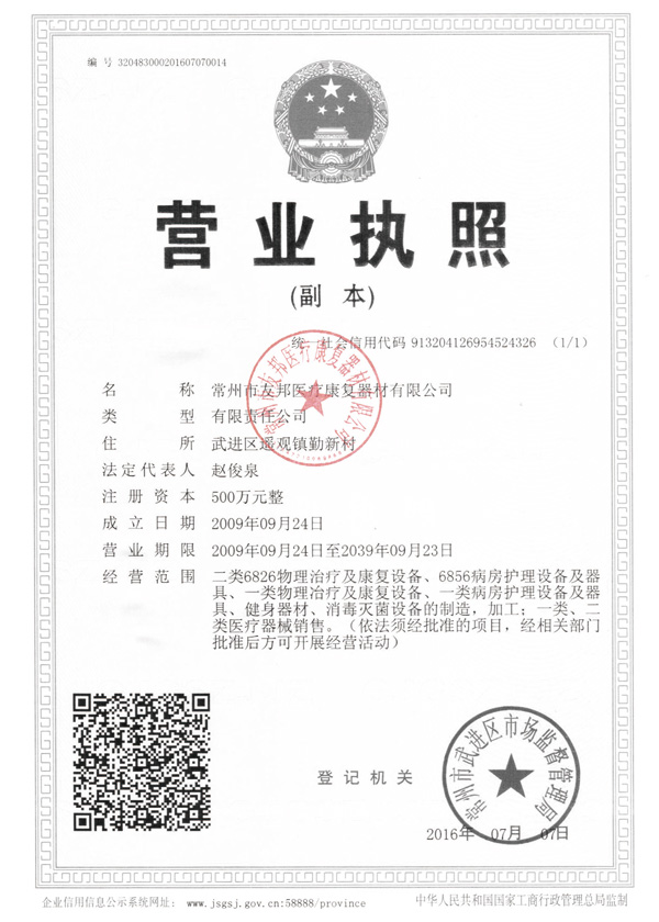 常州市友邦醫療康復器材有限公司位于江南水鄉常州市遙觀鎮, 緊鄰京滬高鐵、滬寧高速公路、沿江高速公路和312 國道,交通十分便利。公司是國內生產康復器材的 大型企業之一,有著完善的硬件設施和規范的管理體系。公司借鑒并吸收了業界康復器材技術,逐漸發展成為集開發、生產、銷售于一體的生產企業。公司現主要產品有牽引治療儀系列、步態訓練系列、上下肢運動系列、全身運動系列、水療系列、兒童康復系列等多個系列產品。